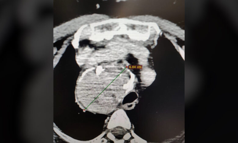 “Gli accertamenti radiologici hanno mostrato che la tiroide era ingrandita, con un’estensione di circa sette centimetri . – spiega il dottor Luigi Madami – L’intervento è stato eseguito con un approccio sternotomico, cioè aprendo parzialmente lo sterno grazie alla collaborazione multidisciplinare con i cardiochirurghi”. I gozzi endotoracici sono rari, spiega infine il Policlinico, rappresentando fino al 15% dei casi di gozzo, ma solo in una piccola parte (ossia dall’1 all’8% dei casi) è necessario un intervento che coinvolge anche il torace, come è accaduto in questa circostanza.