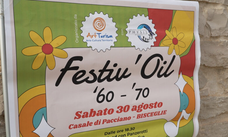 Musica, degustazioni, visite guidate e divulgazione scientifica. Tutto in un unico evento, rigorosamente dedicato all’oro verde di Puglia. Parliamo di “Festiv’Oil”, il festival organizzato, lo scorso fine settimana, nella suggestiva location di Casale di Pacciano, a Bisceglie. Un evento promosso dall’associazione ArtTurism in collaborazione con la Strada dell’Olio Extravergine Castel del Monte, nell’ambito del programma “Sogni nelle notti di Mezza Estate”.