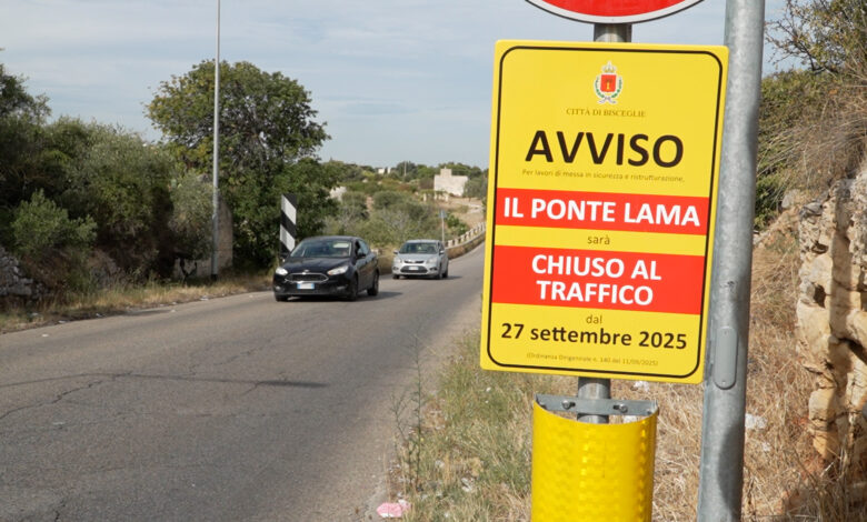 Quelli che vedete nelle immagini sono gli ultimi transiti sul Ponte Lama, la storica struttura di collegamento tra Bisceglie e Trani in muratura eretta nel 1787, prima dell’imminente avvio dei lavori di restauro, ampliamento e messa in sicurezza. Da sabato prossimo 27 settembre, infatti, il ponte borbonico di Lama Paterna sarà interdetto al traffico veicolare: atteso da decenni, l’intervento – affidato all’impresa Mafris di Altamura – è finanziato con 5 milioni di euro stanziati dal Ministero delle Infrastrutture e dei Trasporti e trasferiti dalla Regione Puglia tramite il fondo di sviluppo e coesione, ai quali si è sommato un cofinanziamento del Comune di Bisceglie di 170 mila euro.
