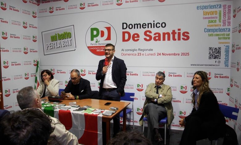 Non ha dubbi il candidato del PD per la BAT al consiglio regionale della Puglia, Domenico De Santis. La sesta provincia dovrà disporre al più presto dei due nuovi ospedali, di Andria e del Nord Barese a Bisceglie. Per farlo bisognerà monitorare l’andamento degli iter che sin qui hanno avuto non pochi problemi. Si è parlato anche di questo nell’ultimo incontro tenuto presso il comitato elettorale di via Regina Margherita, ad Andria, alla presenza dell’assessore alla Sanità della Puglia Raffaele Piemontese. Centrale il tema delle tempistiche per i nuovi ospedali della BAT.
